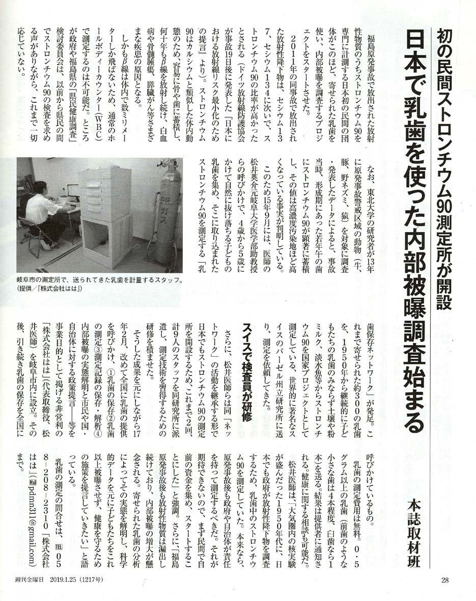 初の民間ストロンチウム90測定所が開設 内部被曝調査始まる (2019年2月27日 週刊金曜日)