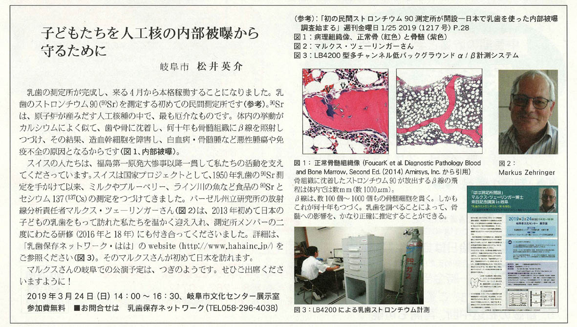 子どもたちを人工核の内部被曝から守るために (2019年3月10日 岐阜県保険医協会新聞)